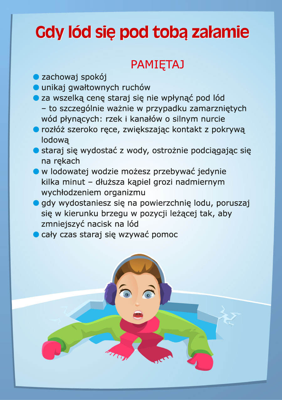 Warto zapoznać się z ich treścią, żeby być świadomym zagrożeń jakie niesie zabawa na zamarzniętym jeziorze oraz żeby wiedzieć jak postępować gdy sami wpadniemy do wody lub gdy niesiemy pomoc osobie pod którą załamał się lód.