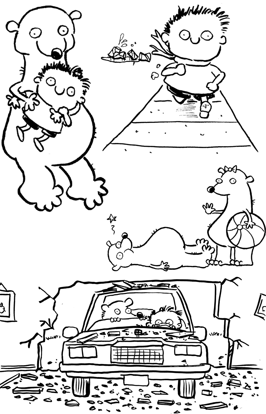 Znakiem szczególnym młodego detektywa jest szalik owinięty wokół jego szyi oraz umiejętności plastyczne ponieważ cała książeczka pełna jest jego zabawnych rysunków.