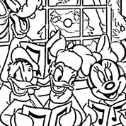 Zobacz jak Boże Narodzenie spędzają bohaterowie Disneya: Myszka Miki i Minnie, Kaczor Donald, Daisy, Goofy i Pluto. Wydrukuj i koloruj.